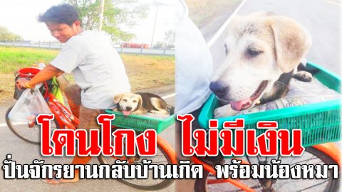"หนุ่ม" โดนโกงค่าแรง ไม่มีเงินติดตัว ตัดสินใจปั่นจักรยานกลับบ้านเกิด พร้อมน้องหมา