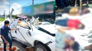 อุบัติเหตุสยอง รถกระบะชนลวดสลิง คนขับถูกลวดสลิงตัดคอขาด