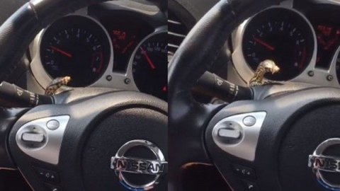 หนุ่มแทบเป็นลม "ตัวเงินตัวทอง" โผล่เกาะพวงมาลัย ชาวเน็ตแห่ส่องทะเบียน เชื่อมาให้โชค (ชมคลิป)