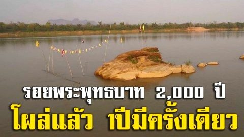 กราบสาธุ โผล่แล้ว! รอยพระพุทธบาท 2,000 ปี ใต้แม่น้ำโขง 1 ปี มีครั้งเดียว