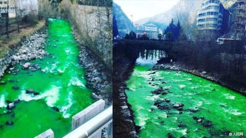 ชาวสเปนตะลึง!จากลำน้ำใสสะอาดกลายเป็นสีเขียวในชั่วข้ามคืน