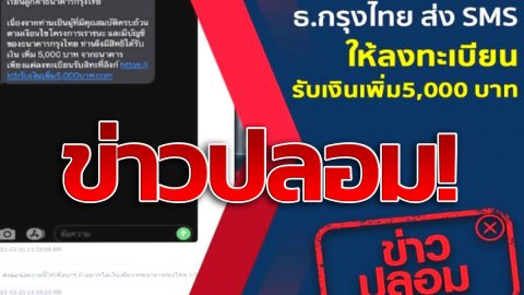 กรุงไทย ยืนยัน‼ ไม่มีนโยบายส่ง SMS ให้ประชาชนลงทะเบียนรับเงินเพิ่ม 5,000 บาท