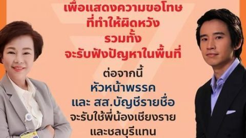 พิธา และ เจี๊ยบ พร้อมทีมงาน สส. ก้าวไกลจะลงพื้นที่เชียงรายและชลบุรี เพื่อขอโทษพี่น้องประชาชนที่ทำให้ผิดหวัง