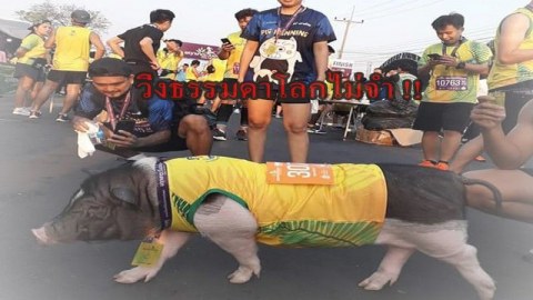 วิ่งธรรมดาโลกไม่จำ !! "เจ้าหมู" โชว์ฟิตเข้าร่วม แข่งงานมินิมาราธอน