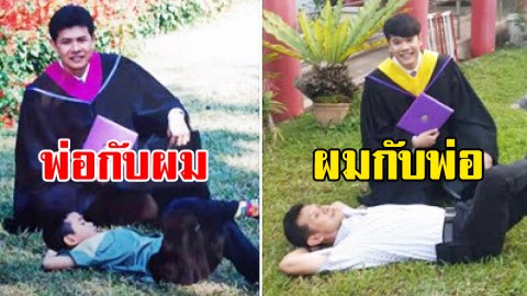 ลูกชายโพสต์รูปรับปริญญา ก่อนเคยนอนรอคุณพ่อวันงาน 16 ปีต่อมา คุณพ่อนอนรอเเสดงความยินดีกับตนไม่ต่างกัน
