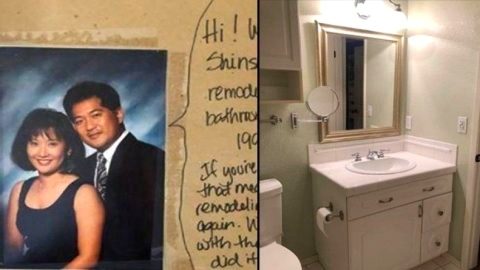 คู่รักเซอร์ไพรส์เจอ "ข้อความลับ" จากเจ้าของบ้านคนเก่า ขณะรีโนเวทห้องน้ำ (ภาพ)