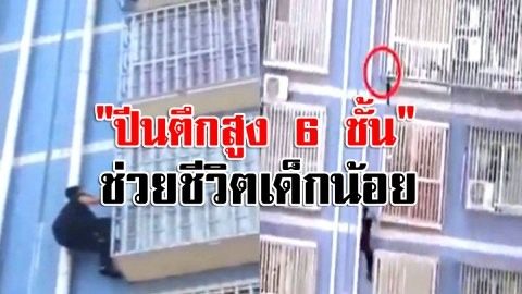 นับถือหัวใจ ! ชายหนุ่มไม่กลัวตาย "ปีนตึกสูง 6 ชั้น" ด้วยมือเปล่า? ช่วยชีวิตเด็กน้อยติดรั้วลูกกรง !