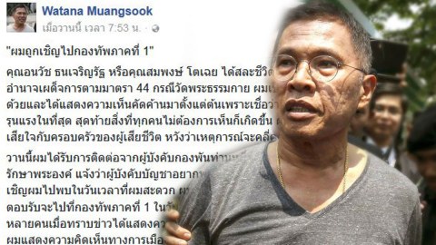 ทหารเรียกวัฒนา เมืองสุข พบเช้า 27 กุมภาพันธ์เผยถูกเชิญไปกองทัพภาคที่ 1