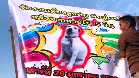 ขำยกโซเชียล "ป้ายประกาศเลี้ยงโต๊ะจีน" จากเจ้าของสุนัข หลังแก้บนน้องหมาตัวโปรดหายไป 5 วัน (ภาพ)