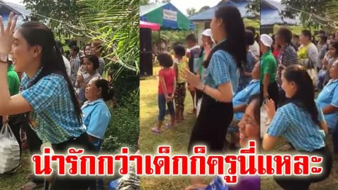 น่ารักไปอีก! เมื่อครูสาว กลัวท่าเด็กนักเรียนจะไม่เป๊ะ เลยจัดเต็มให้เด็กๆเห็นไปเลยจ้า (คลิป)