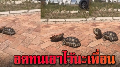 คนดู 12 ล้าน มิตรภาพร่วมสายพันธุ์ เมื่อเต่าเจอเพื่อน นอนหงายท้องตากแดด ช่วยเหลือตัวเองไม่ได้ (คลิป)