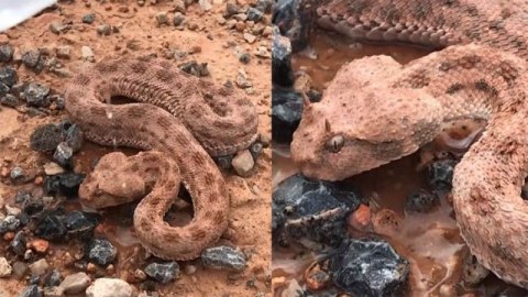 หมดท่าอสรพิษร้าย "นักเดินเขา" ป้อนน้ำงูสุดโหดกลางทะเลทราย หวังช่วยชีวิต (คลิป)