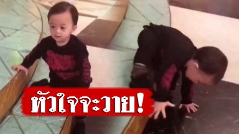 วินาที "น้องพายุ" เสียการทรงตัวจนเกือบหน้าทิ่มโชคดี "พี่เลี้ยง" คว้าไว้ได้ทัน
