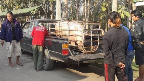 หมูหนีตายจากโรงฆ่าสัตว์เข้าโรงพยาบาลแม่ระมาดช่วยกันเรี่ยไร 8,000 บาทไถ่ชีวิต