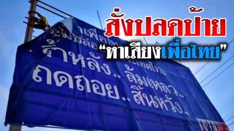โดนสั่ง!!ปลดป้ายหาเสียง “เพื่อไทย” เจ้าของที่ดินโอด ถูกผู้มีอำนาจขู่ ห้ามให้ความร่วมมือ