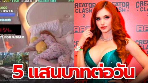 "Amouranth" สตรีมเมอร์สาวชื่อดัง เผยว่าเธอทำเงินได้ราว 5 แสนบาทต่อวัน จากการไลฟ์ "นอนเฉยๆ บนที่นอน"