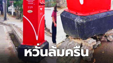 สู้ชีวิตมาก! ตู้หยอดจดหมายไปรษณีย์ มีแค่อิฐตัวหนอนรองฐานตู้ หวั่นล้มครืน อันตรายกับผู้สัญจร