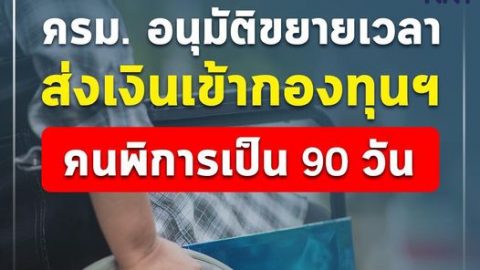 ครม. อนุมัติขยายเวลา ส่งเงินเข้ากองทุนฯ คนพิการเป็น 90 วัน