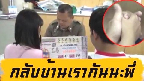กลับบ้านเราเถอะพี่ คู่รักหนุ่มสาวโรงงาน กุมมือขึ้นโรงพักถูกหวยรางวัลที่ 1 ชุดใหญ่