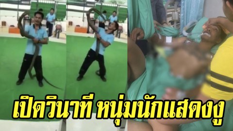 เปิดวินาที หนุ่มนักแสดงงู ซักซ้อมกับจงอางยักษ์ สุดท้ายพลาดจนได้ (มีคลิป)