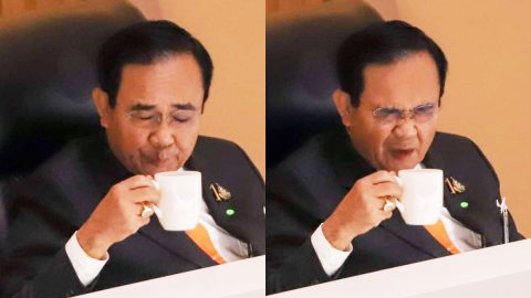 สีสันในสภา!!! กับภาพท่านนายกกินกาแฟ