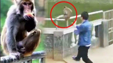 เจี้ยกๆๆ!! หนุ่มมือบอนแกล้งผลักลิงตกน้ำ สุดท้ายโดนลิงตามเอาคืน