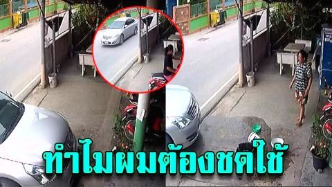 จวกเก๋งมักง่าย เข้ามากลับรถหน้าบ้าน เหยียบข้าวของพัง ขับหนีไปหน้าตาเฉย