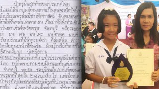 โคตรเจ๋ง!? "เด็กสระแก้ว" คว้ารางวัลชนะเลิศคัดลายมือระดับประเทศ ที่เห็นแล้วต้องตะลึง สวยเป๊ะเหมือนปริ้นท์มา!? (ชมภาพ)