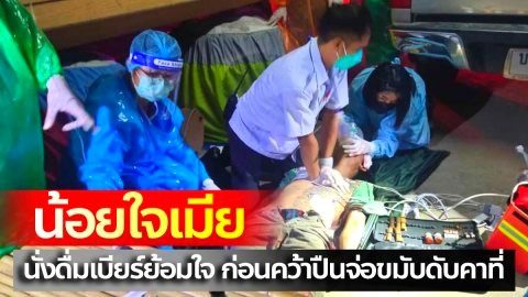 เกิดเหตุ..หนุ่มหัวลาก นั่งดื่มเบียร์อยู่ดีๆ ก่อนคว้าอาวุธปืนเป่าขมับดับสลด