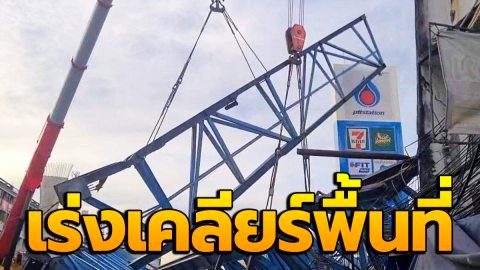 เฝ้าจุดเกิดเหตุ! จนท.เผย "ตัดย้ายชิ้นส่วนเครน" เคลียร์พื้นที่สะพานลาดกระบัง ชิ้นที่ 1 สำเร็จแล้ว
