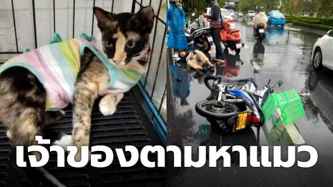 เจ้าของตามหาแมว ชื่อ "ซิมบ้า" หลุดหลุดหาย ระหว่างทางกลับบ้าน หลังมอเตอร์ไซค์ที่รับน้องมา เกิดอุบัติเหตุล้ม