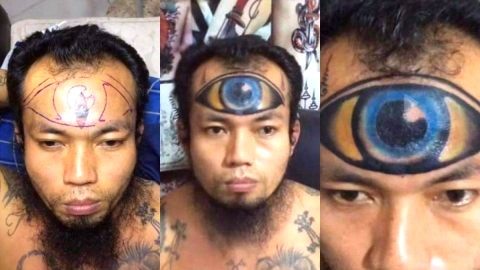 ชาวเน็ตอึ้ง! หนุ่มสักลาย "ดวงตาของเซารอน" กลางหน้าผาก แซวลั่นโอ้เทพ 3 ตาละมาดลใจ