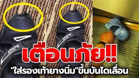 เพจดังเตือนภัย! "ใส่รองเท้ายางนิ่ม" ใส่เดินขึ้นลงบันไดเลื่อน ต้องระมัดระวังอาจเสียเท้าได้