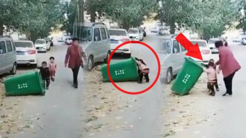 เด็กดีเป็นศรีแก่ชาติ! เด็กจีนวัยเตาะแตะรวมพลังยกถังขยะล้มกลางถนน(ชมคลิป)