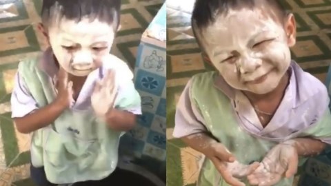 โถวววน้อง!! หนูน้อยชั้นอนุบาล ต้องยอมจำนนด้วยหลักฐาน ถูกจับได้เทแป้งเล่น ร้องไห้โฮเมื่อถูกครูทำโทษให้ทาหมดหน้า (คลิป)