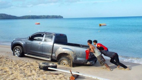 ขับกระบะลงหาด เปิดเพลงเคล้าวงเหล้า ล้อหลังติดหล่ม เร่งกู้นาน 8 ชม.หวิดจมทะเล