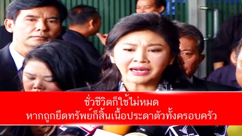 ยิ่งลักษณ์โอดครวญคดีจำนำข้าวเงิน 3.5 หมื่นล้านชั่วชีวิตก็ใช้ไม่หมด หากถูกยึดทรัพย์ก็สิ้นเนื้อประดาตัวทั้งครอบครัว