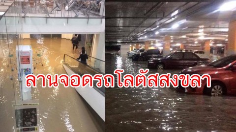 มาแล้ว! น้ำไหลท่วมลานจอดรถ lotus เมืองสงขลา กลางดึก