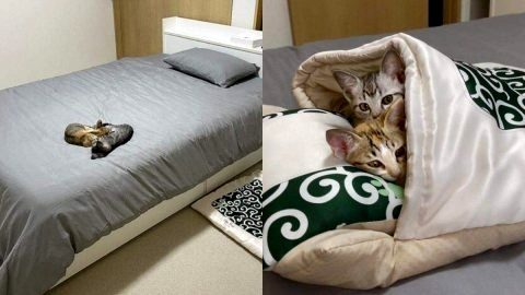 สุดน่ารัก "ทาสแมว" ซื้อที่นอนแมวอันใหม่มาให้ 2 เหมียว แต่กับไม่ยอมนอนเตียงตัวเอง