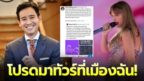 โปรดมาทัวร์ที่เมืองฉัน! "พิธา" ทวิตหานักร้องสาว "เทย์เลอร์ สวิฟต์" โพสต์เชิญมาทัวร์คอนเสิร์ตที่ไทย
